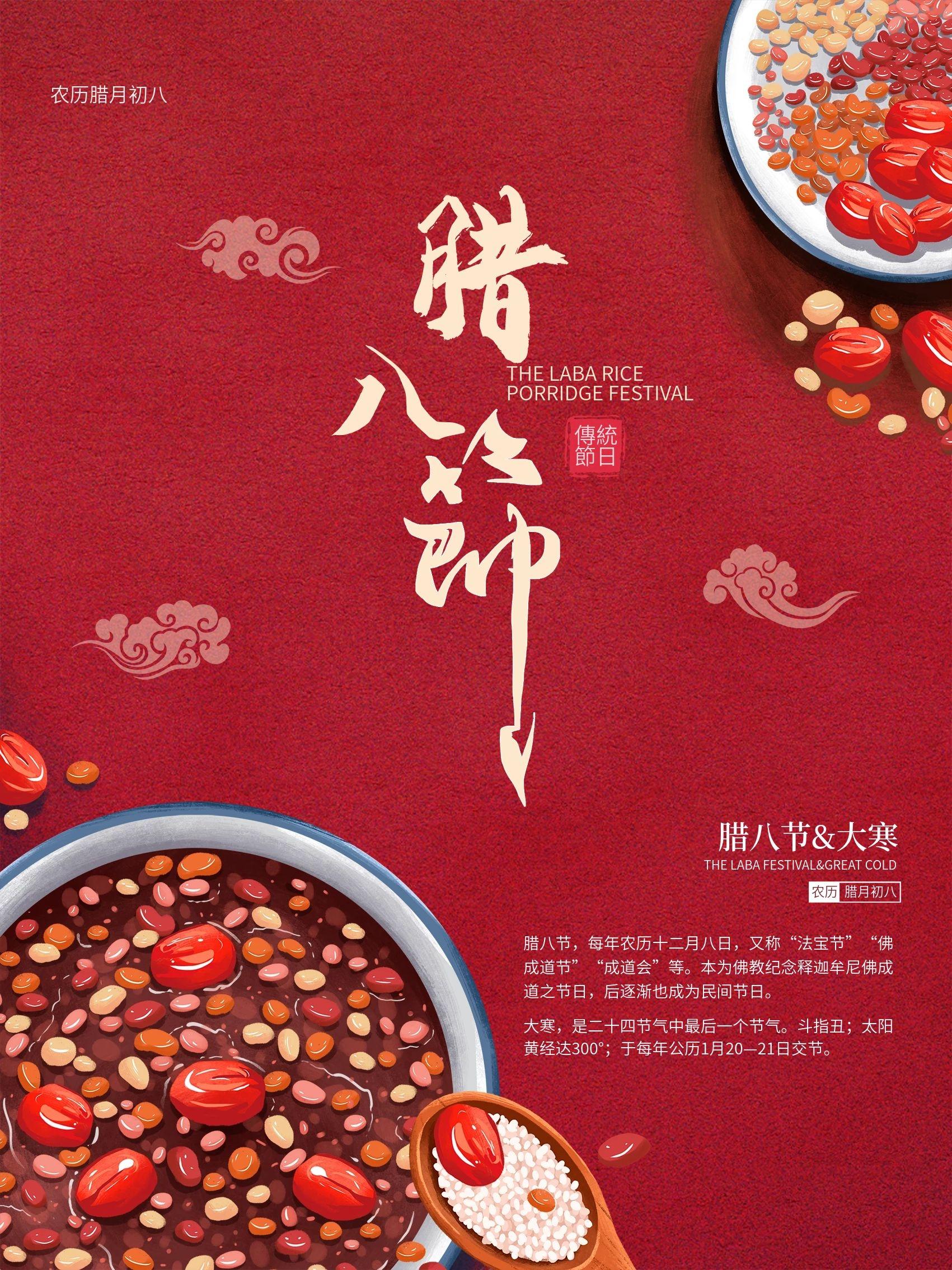 腊八节,即每年农历十二月八日,又称为“法宝节”“佛成道节”“成道会”等。本为佛教纪念释迦牟尼佛成道之节日,后逐渐也成为民间节日。