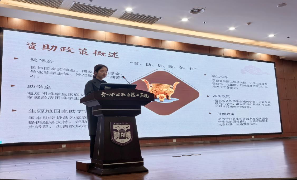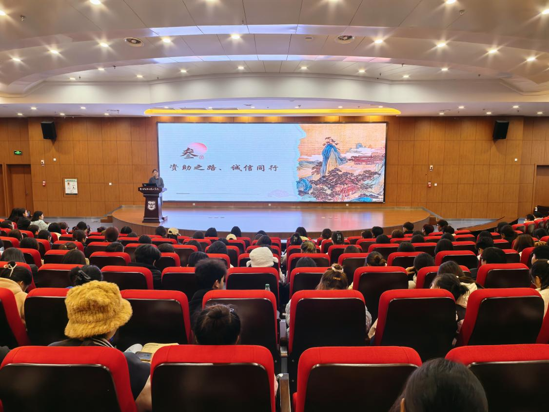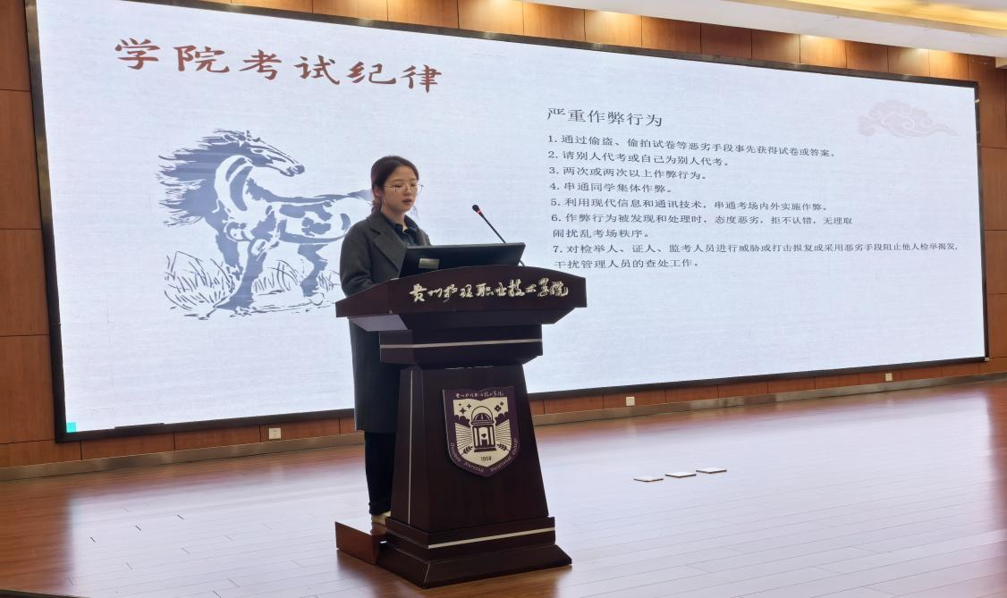 学生工作处专职辅导员张钱英以“巧猜成语话诚信”“趣听故事说诚信”等小游戏开场,大大激发了学生兴趣。随后通过详细解读国家考试法规和学院考试纪律,将诚信教育和法律知识有机结合,介绍了学院有关考试违规违纪与作弊行为的界定,同时全面阐释国家与学院资助政策,涵盖奖、助、贷、免、勤、补等多方面内容。同学们认真聆听并承诺诚信应考、受助感恩。