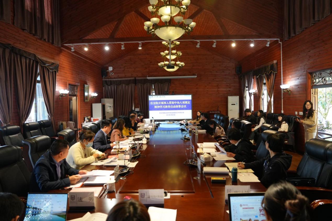 会议指出,习近平总书记在贵州考察时对开展学习教育提出明确要求,为我们提供了根本遵循。全院上下要把学习贯彻习近平总书记在贵州考察时的重要讲话精神和关于加强党的作风建设、教育的重要论述结合起来,深刻认识开展学习教育的重大意义,聚焦主题、注重实效,教育引导党员干部进一步吃透中央八项规定及其实施细则精神,增强定力、养成习惯,以优良作风凝心聚力、干事创业,确保学习教育取得实实在在的效果。
