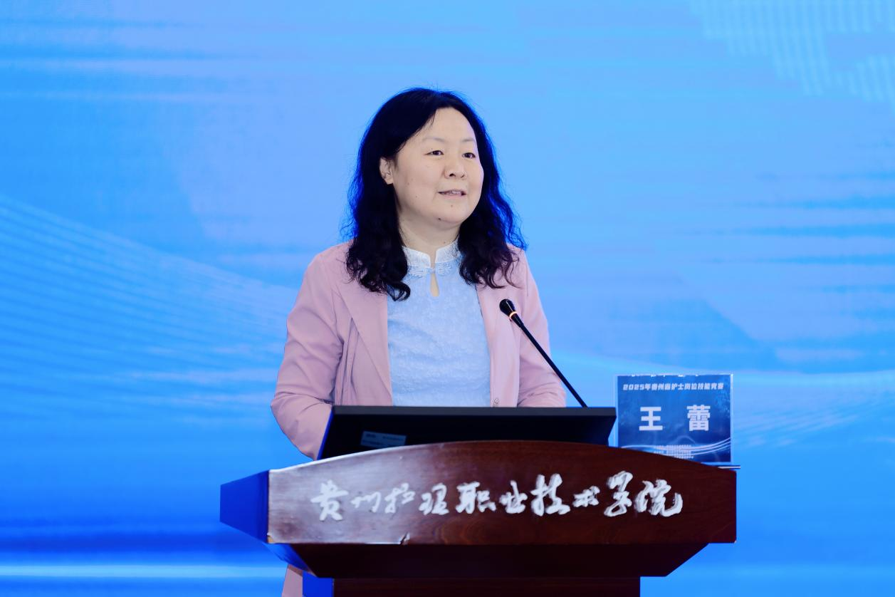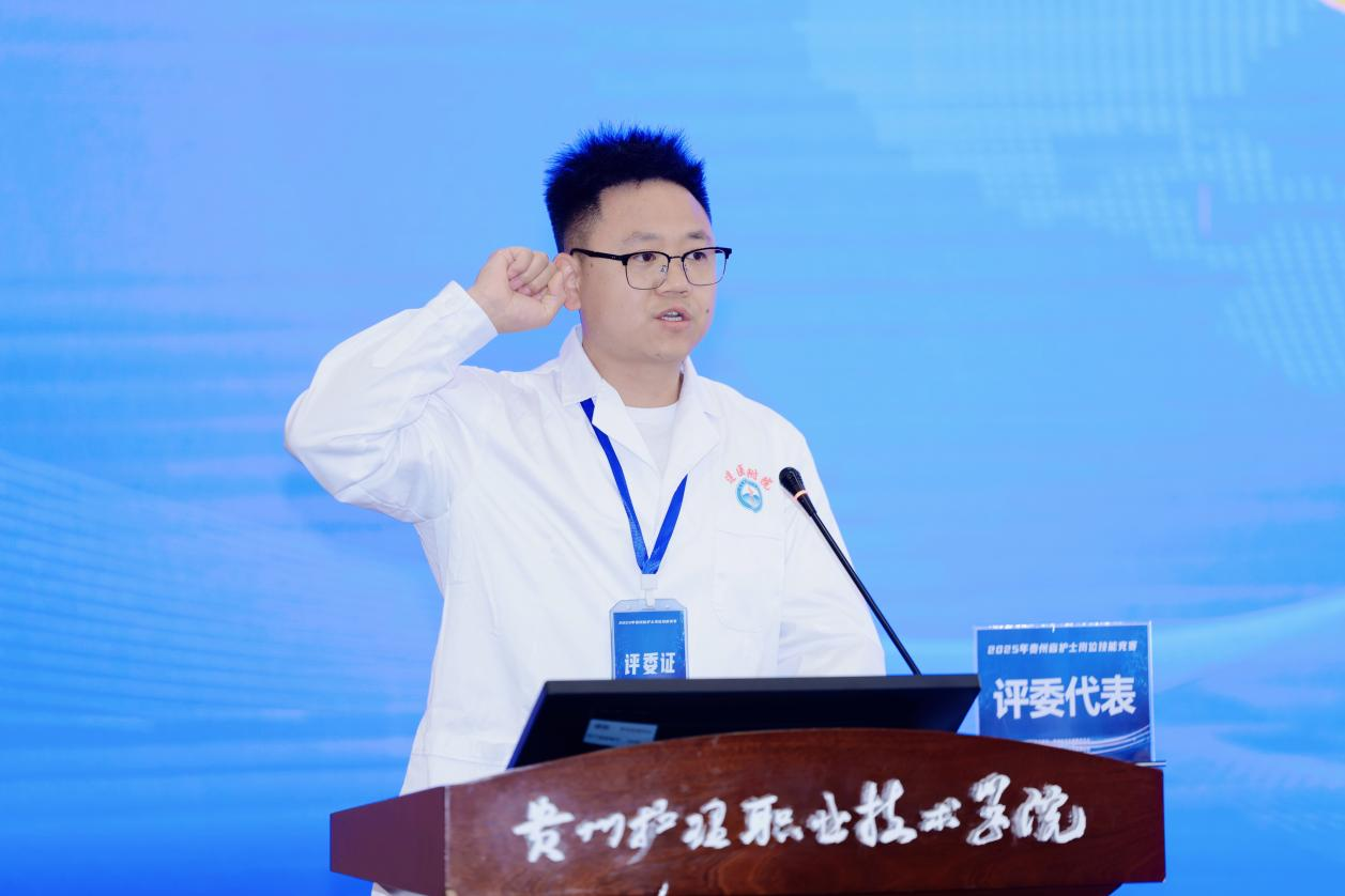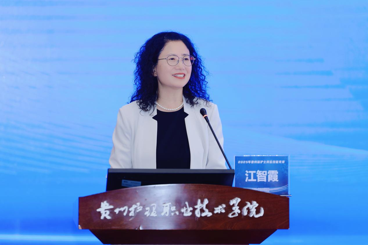 江智霞在致辞中表示,我院作为大赛承办方,十年来与贵州护理事业同频共振,实现了从中职到高职、再到省级“双高校”的跨越式发展。在专业建设、国际交流、技能竞赛等领域屡创佳绩,上个月更是一日斩获九项省级荣誉,彰显了学院的强劲实力。最后她用三个“春天之约”与大家共勉:以“精技”为根,锤炼专业能力;以“仁心”为本,传递温暖关怀;以“创新”为翼,拥抱智慧护理新时代。