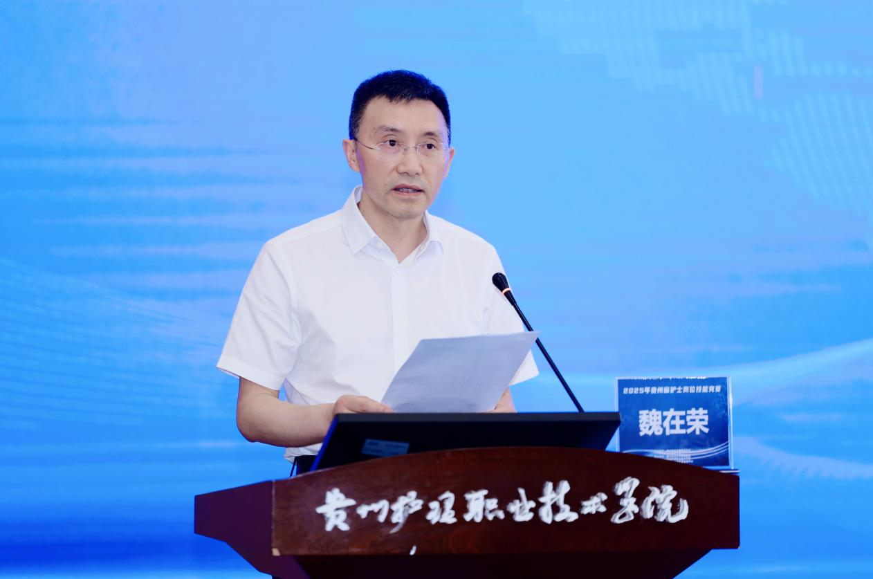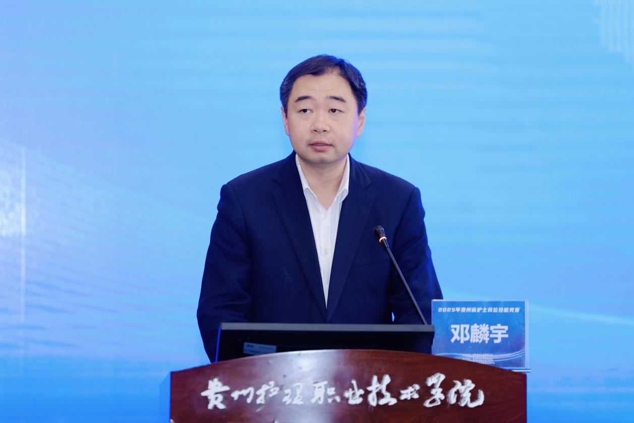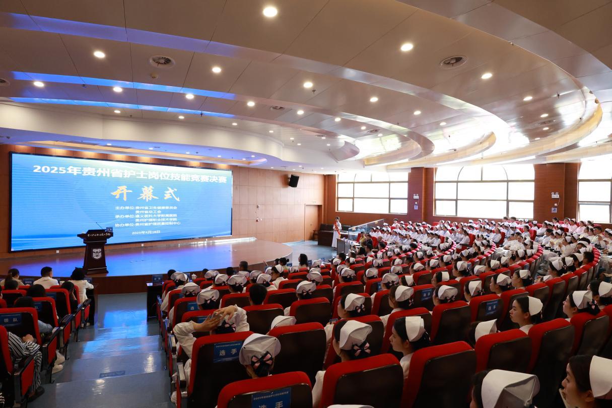 4月18日,2025年贵州省护士岗位技能竞赛决赛开幕式在我院金海校区学术交流中心拉开帷幕。省卫生健康委党组成员、副主任邓麟宇讲话并宣布大赛开幕。