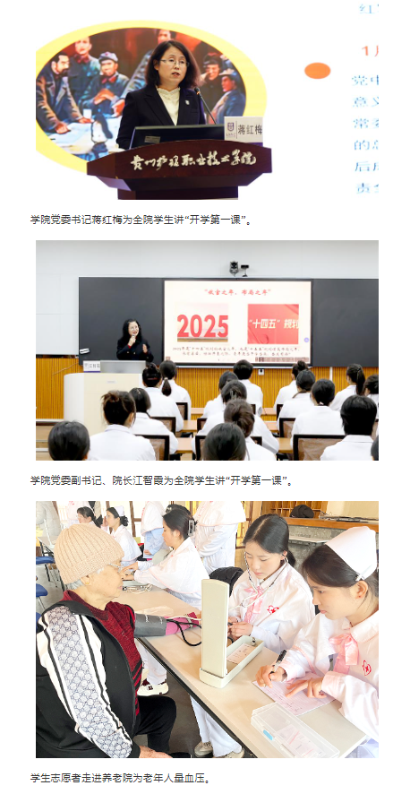 365天初心不改,“丹心”铸魂强根基,“仁心”育人显担当,“匠心”治学提质量,构建党建与高职护理教育深度融合的发展生态。从课堂思政的润物无声到乡村振兴的躬身实践,从师资队伍的师德淬炼到学生成长的全程领航,学院以“党建365·丹心仁心匠心”品牌为引领,将党的建设融入教育教学、人才培养、社会服务的每一个角落。