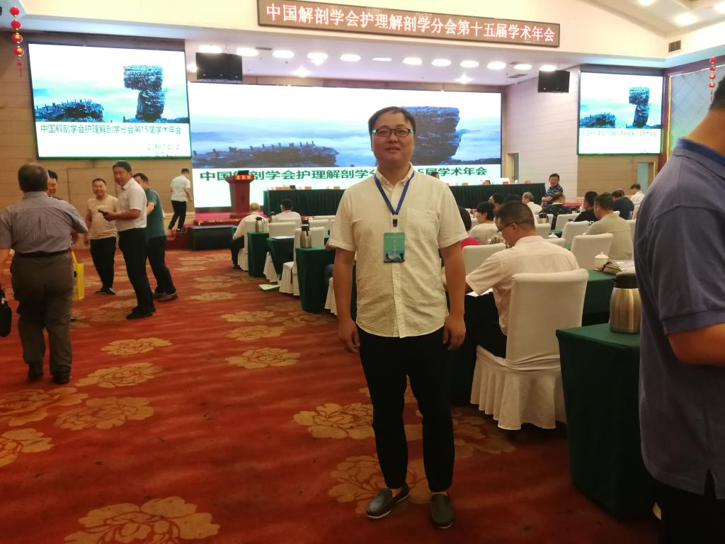 有着医师资格证的他,放弃当医师的梦想,弃医从教,当上了一名教师。当大家都选择当专业课教师的时候,他选择了当一名“人体解剖学”教师。每天与人体标本为伴,开展教育教学。为了更好地普及解剖医学常识,他积极参与建设了“人体生命科学馆”。该馆建成并投入使用后,每年接待上千名社会各界人士,发挥了教学,科普的双重作用,被评为“贵州省科普教育基地”,有力地推动了医学知识的普及,帮助人们了解生命科学的奥秘。由于气候原因,人体标本经常会发霉,当别人害怕、恐惧时,他带领团队,用棉球蘸取无水酒精一点一点、一具一具清洗那1085件标本。为了清洗细致,他近距离接触标本,有时标本与他的脸的距离只有10多厘米的距离,福尔马林散发的气体,刺鼻又刺眼,他经常“一把鼻涕一把泪”,擦拭后又继续清洗。即便这样,再苦再累,他没退缩过,家属反对,同事抱怨,他没放弃,在这岗位上一待就是7年。建馆5年来,1085件标本保存完好,无一损坏。为了进一步提升自己的业务水平,2019年他考上贵州医科大学人体解剖学与组织胚胎学全日制硕士研究生,将继续从事“人体解剖学”教育教学,为专业课当好“配角”。