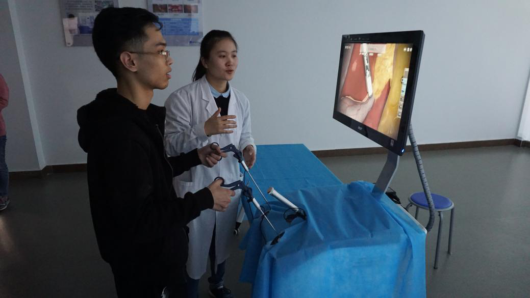 最后,黄书记与学院全体参训教师合影留念并前往贵州医科大学临床技能中心参观学习。临床技能中心解说人员细致地介绍了技能中心的教育模式顶层设计、大数据教育运营与管理中心、一体化教室、在线自主技能训练中心、智能情景化综合急救教学工作坊等多个区域,我院教师也亲身体验了各项教学设施设备。临床技能中心先进、完备的教学器械和一流、超前的教育理念都让我院教师受益匪浅。