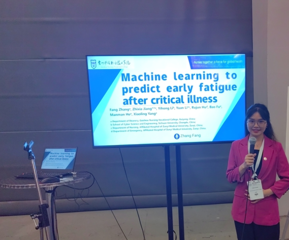 本次大会收录了以我院张芳为第一作者,杨晓玲为共同作者,江智霞为通讯作者的论文《Machine learning to predict early fatigue after critical illness 》。该研究主要采用六种机器学习算法预测危重症后的早期疲劳发生情况,并探讨发生早期疲劳的危险因素。研究结果表明,52.87%的患者在转出ICU后出现早期疲劳症状,说明早期疲劳的发生率较高;此外,机器学习能有效的预测早期疲劳的发生,其中以随机森林(Random Forest,RF)模型的预测效果最好;该研究还发现,影响早期疲劳发生的最重要因素是年龄、CRP水平和ICU住院时长。该团队致力于危重症患者ICU 后综合征研究近10年,并在国内外发表数十篇高质量论文,已经成为国内ICU 后综合征研究的重要团队。
