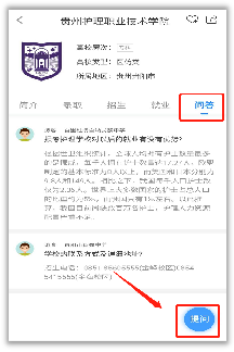 登录“掌上高考”,在“查大学”频道中搜索“贵州护理职业技术学院”,即可进入掌上高考院校数据库页面,点击“问答”栏目,通过“提问”窗口可跳转至“招生咨询智能问答系统”,完善基础信息后即可在线咨询或留言。