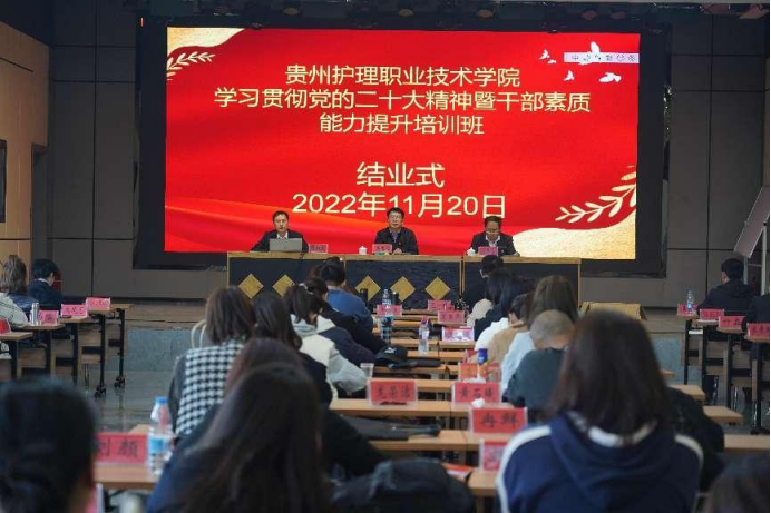 为深入学习贯彻习近平新时代中国特色社会主义思想,认真学习贯彻党的二十大精神及习近平总书记关于党的建设、教育工作、意识形态等领域的重要指示批示精神,11月18日至20日,我院以“强素质 提能力 促发展”为主题组织开展学习贯彻党的二十大精神暨干部素质能力提升培训班。此次培训班由贵州省委党校统筹安排在毕节市委党校金沙县后山现场教学点举办,培训对象为学院各系(部、中心)、处(临时)负责人,各科室(临时)负责人,各党总支支委成员及专职组织员,各党支部支委成员,各教研室主任、副主任共计87人。